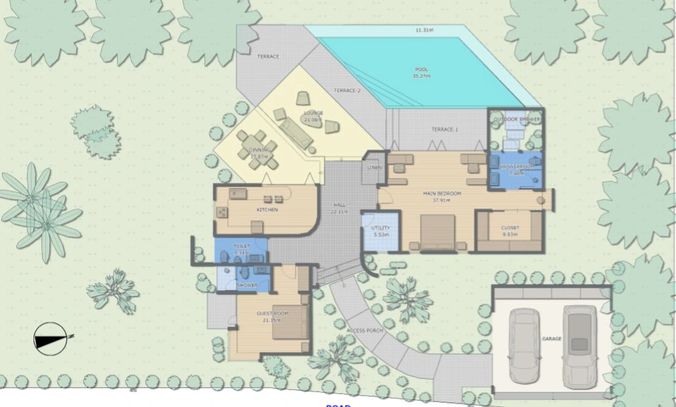 Villa 'Bunga Raya' is positioned at plot number 3. It's size is about 1,500 sqm.